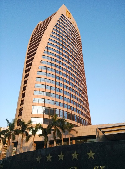 作品文字說明:陽光明媚的天氣,萬里無云的藍(lán)天下曠遠(yuǎn)錦江國際酒店。
